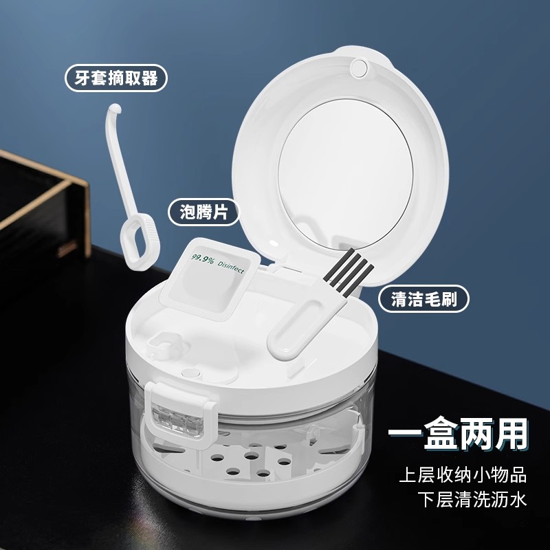 新款牙套盒假牙清洗器盒子保持器收纳盒保持器正畸盒子带镜子防尘