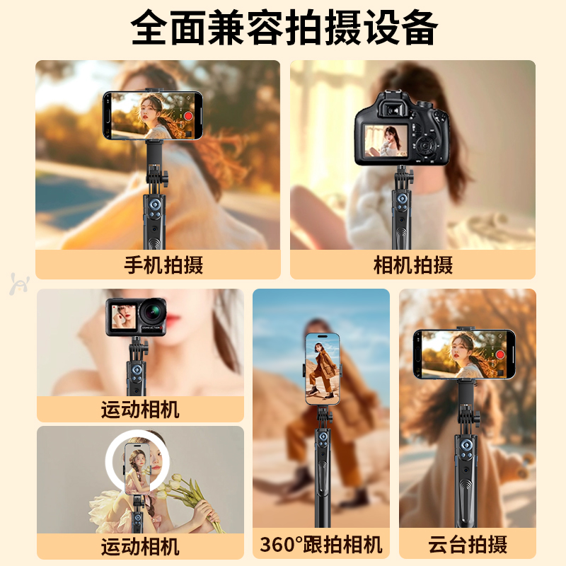 2025新款防抖自拍杆三脚架手机拍摄支架手持便携式全景360度旋转多功能旅游拍照神器抖音落地直播四脚架2025