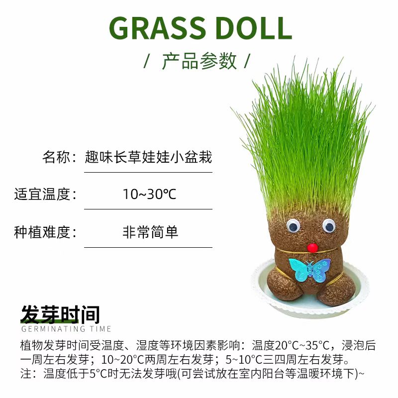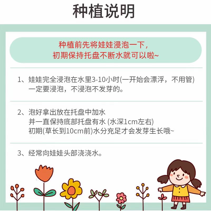创意草头娃娃水培桌面长草儿童种植小盆栽绿植观察植物幼儿园客厅