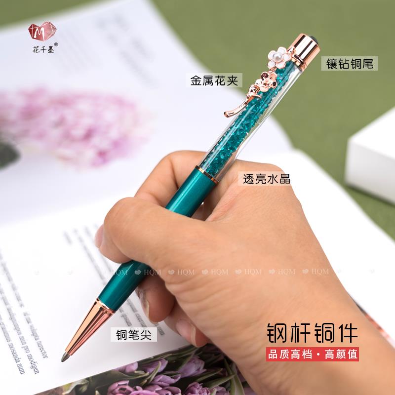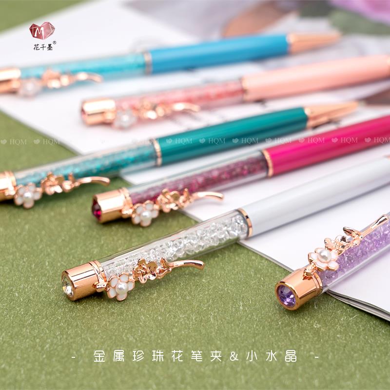 珍珠花笔夹水晶圆珠笔少女中性顺滑签字笔高颜值送同学教师礼刻字