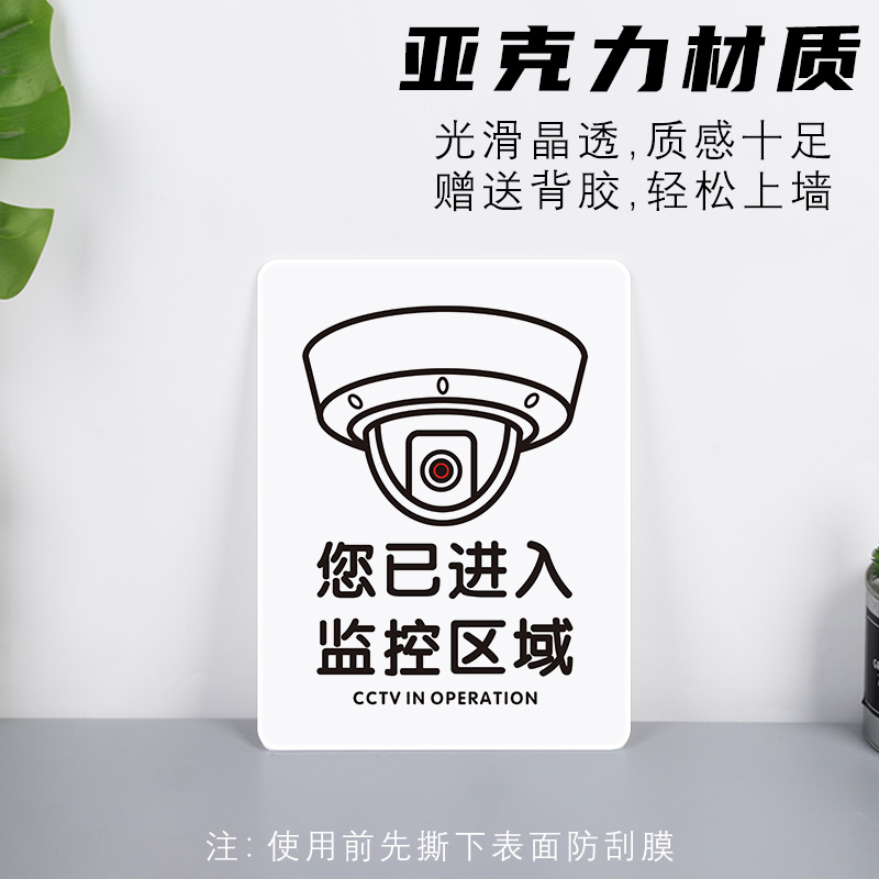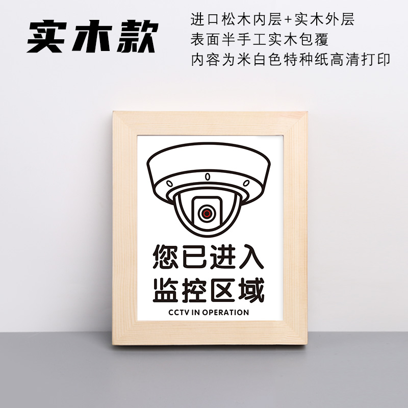 您已进入监控区域提示牌警示牌禁止24小时视频严谨标识牌创意禁止吸烟展示制度牌小清新木框警示牌亚克力