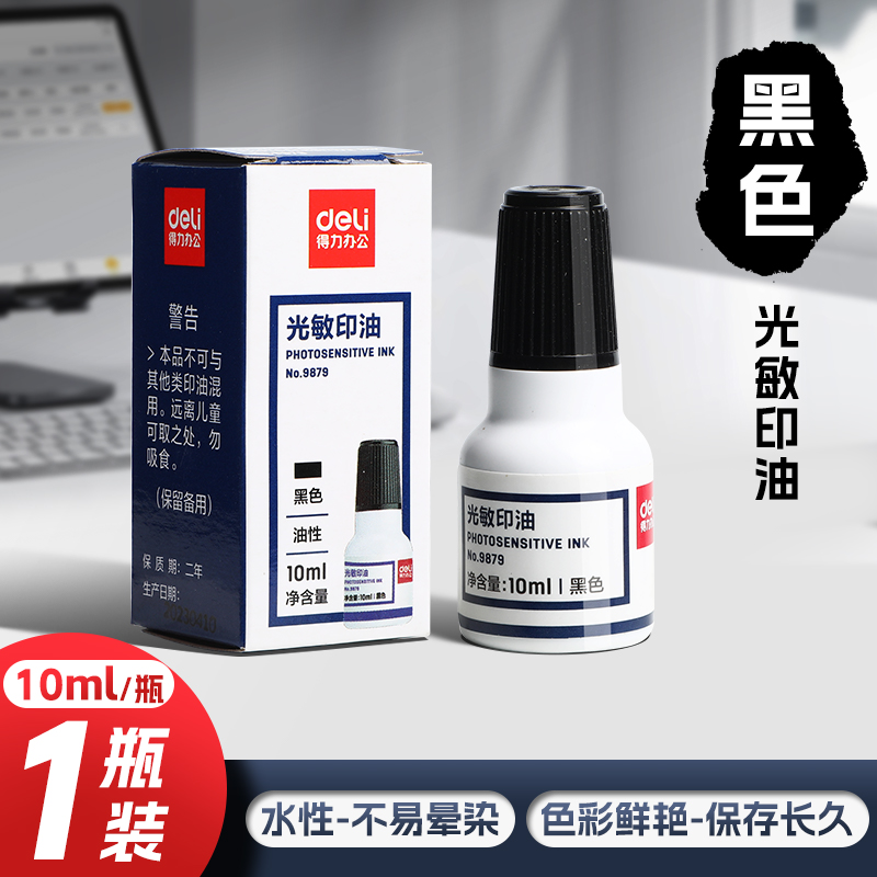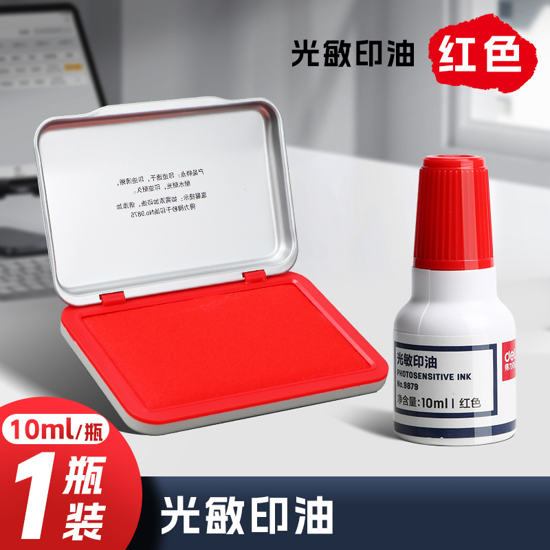 得力光敏印油红色【油性】速干印章加印油 红色蓝色黑色章印墨油印泥专用油补充液印章/刻章/印台使用公章油