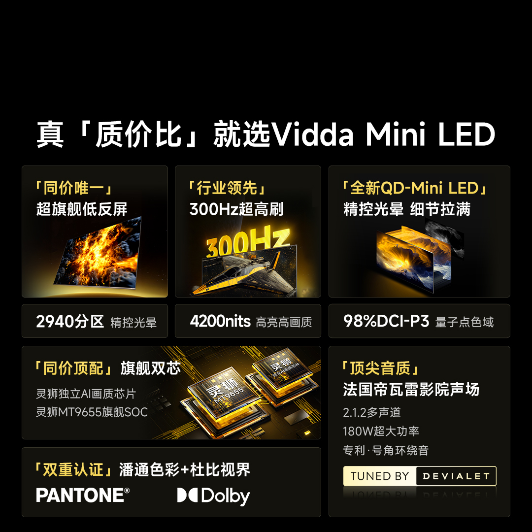 Vidda发现X Pro 2026款 85英寸海信极黑低反屏QD-Mini LED电视122