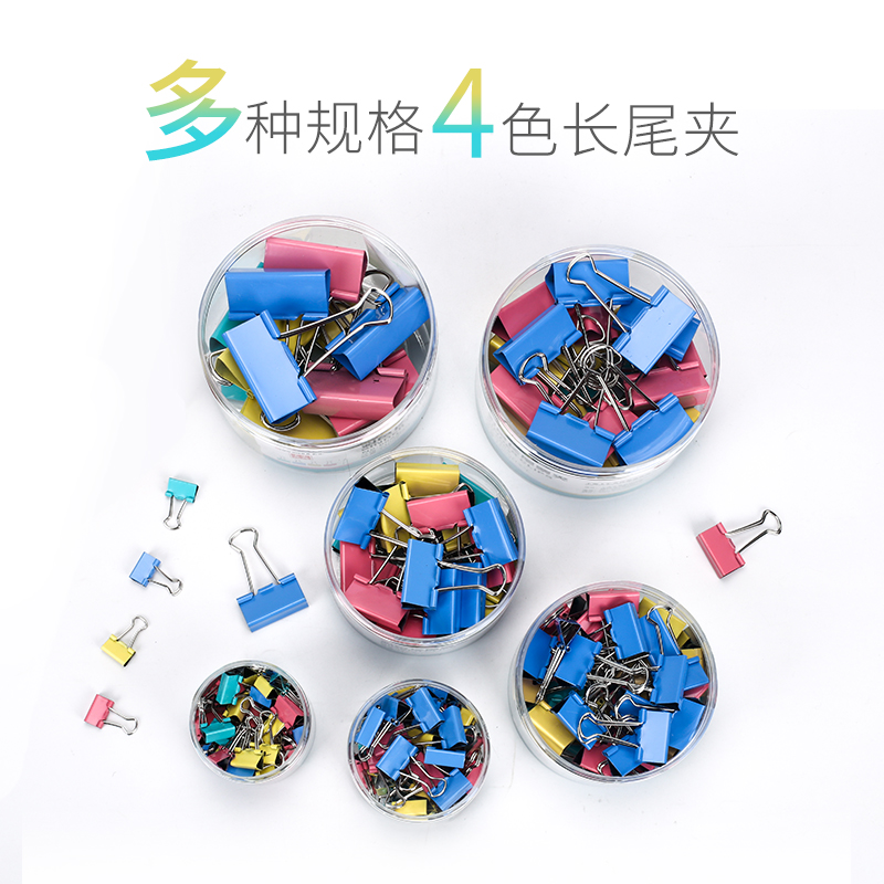 晨光长尾夹彩色黑色文件夹子多功能金属燕尾夹发票据省力办公用品