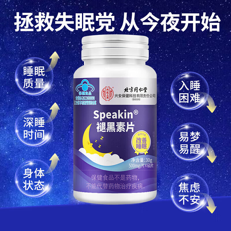 北京同仁堂褪黑素片改善睡眠入睡难易醒多梦睡不着安瓶助官方正品