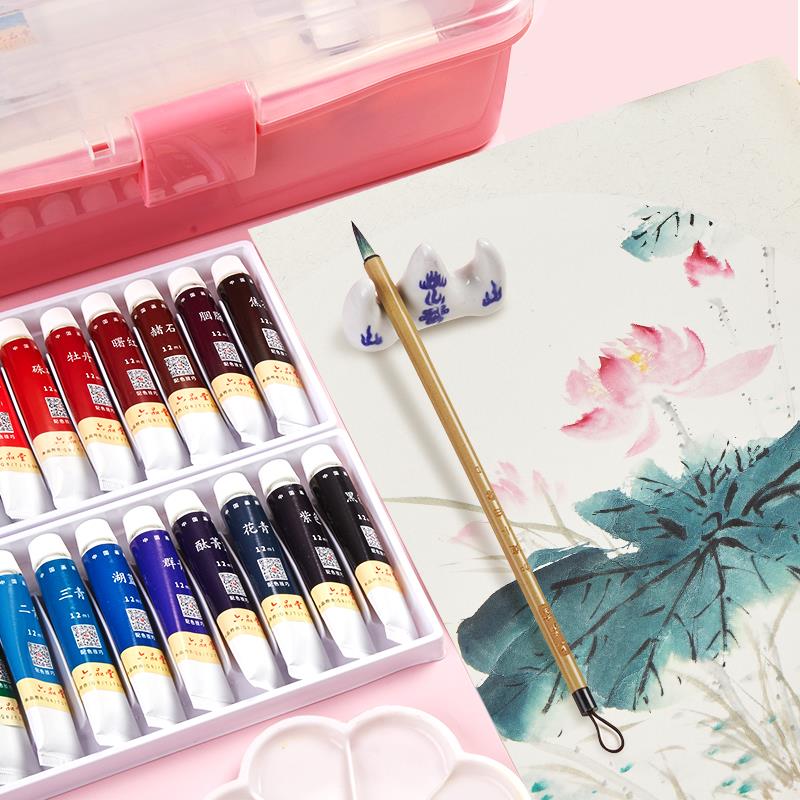 国颜料初学套装12色小学儿童入HVH门材料毛笔工笔者画女生2画4生