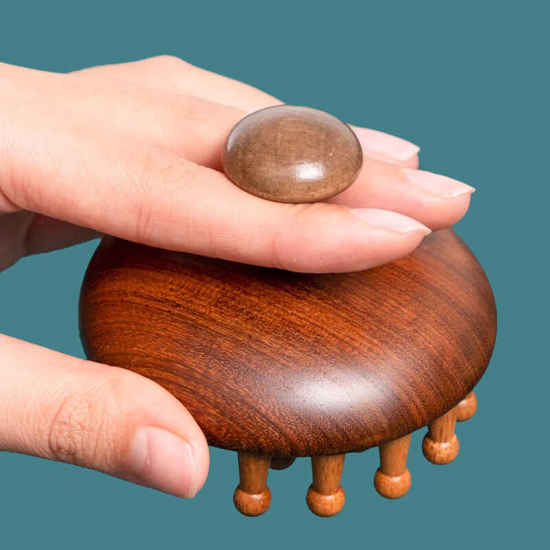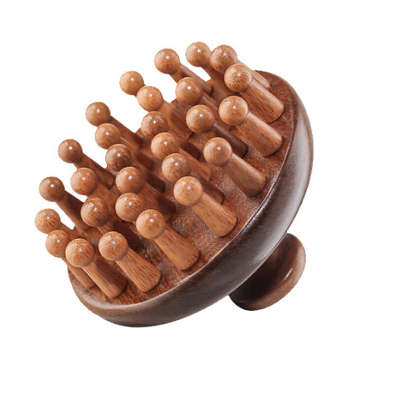 高端檀木圆盘按摩梳头部头皮经络梳毛囊疏通神器养发保健梳子通用