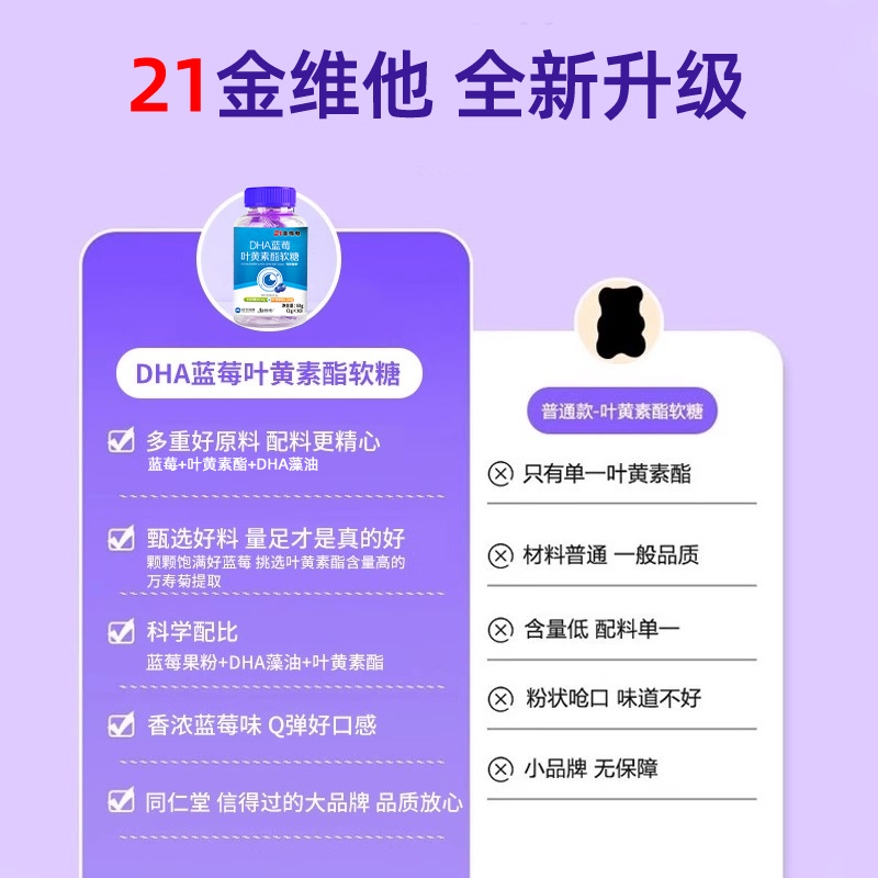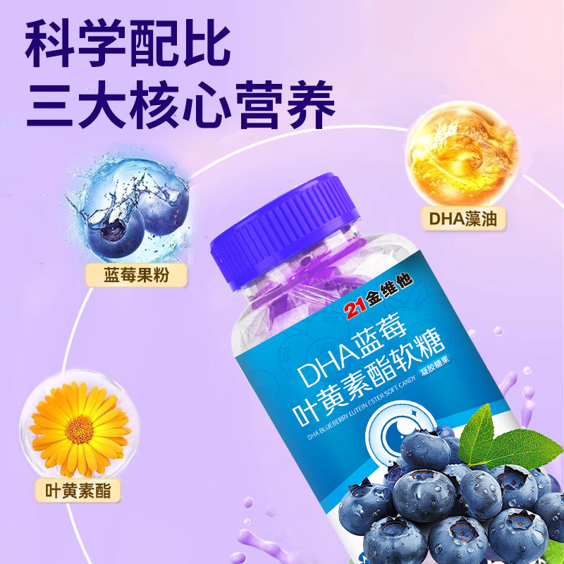 21金维他DHA蓝莓叶黄素软糖儿童青少年护眼官方旗舰店正品bw健康