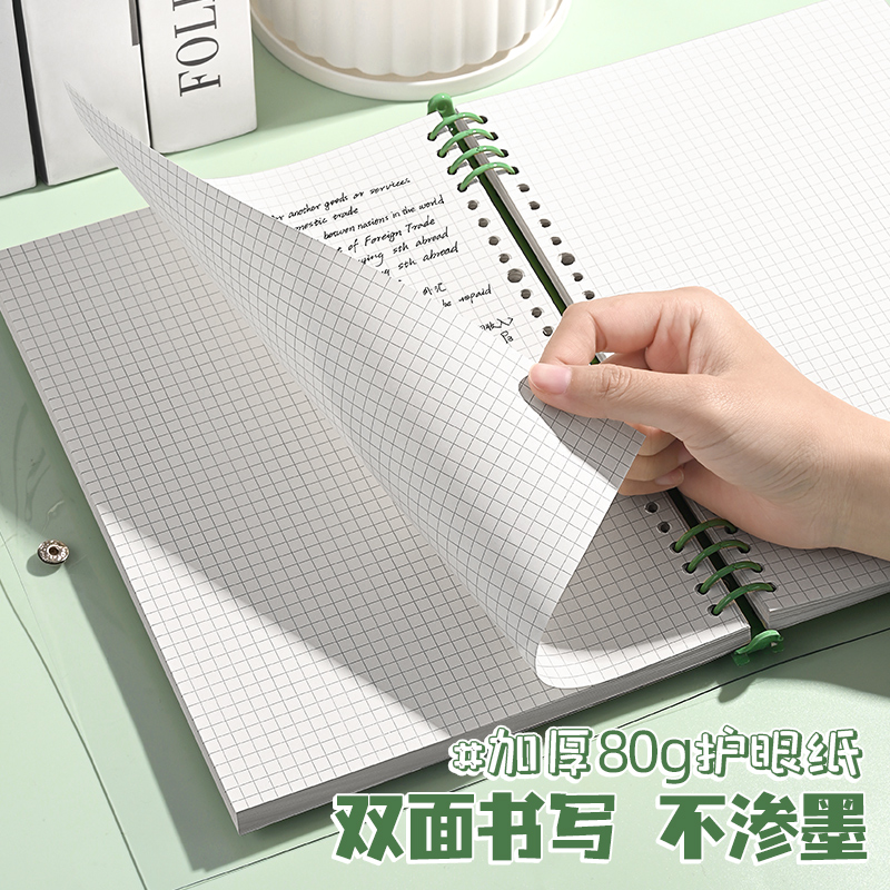 上翻活页笔记本可拆卸方格本网格本子高颜值初中生专用高中格子小方格方形本复古考研加厚2025新款文具草稿纸