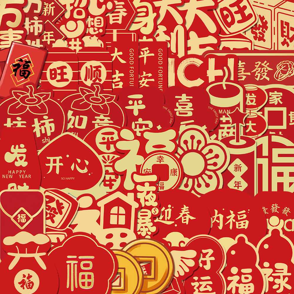 新款直销多款2025春节装饰好物 沾福气好运来平安喜乐喜庆贴纸 新