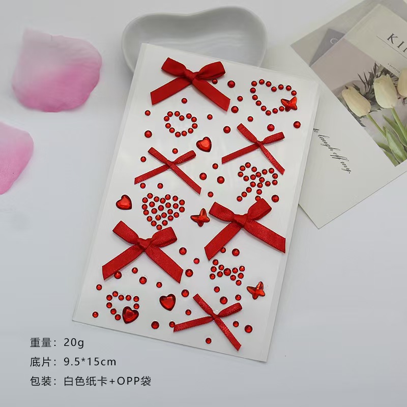 红色蝴蝶结情人节脸部妆容脸贴装饰脸上丝带贴纸爱心钻石生日儿童