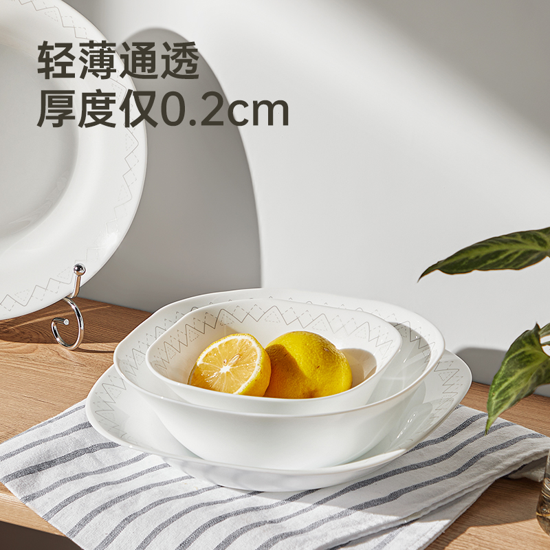 炊大皇碗碟套装中式2025新款轻薄餐具家用现代玻璃白色菜盘子汤勺