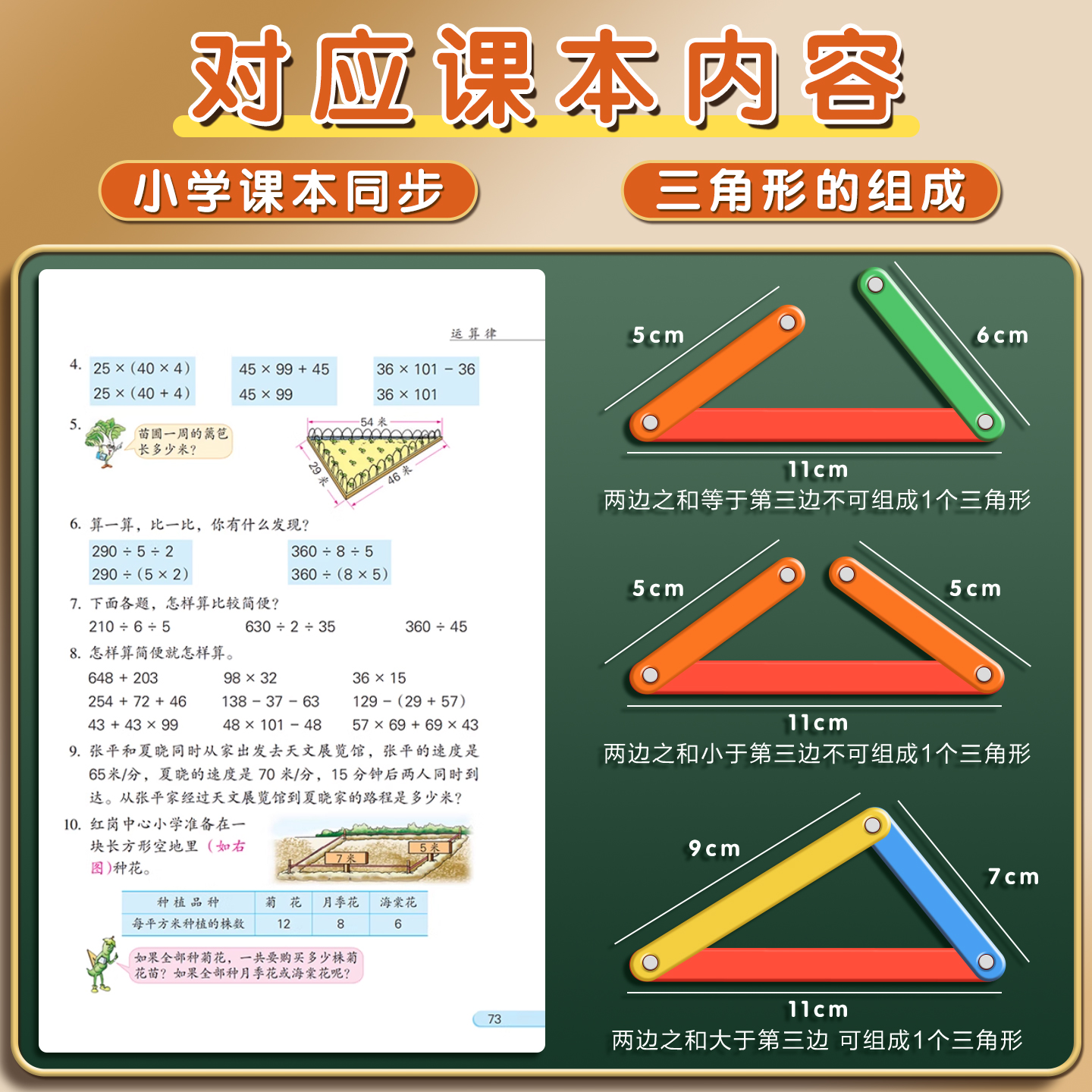 平行四边形活动框架教具大号磁性拼接条套装小学生数学学具图形活动角学习三角形三边关系正方形长方形教师用