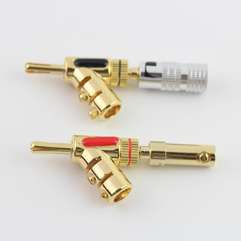 纯铜镀24K金枪型香蕉头 喇叭线音箱线插头 可锁式枪型插头香蕉头