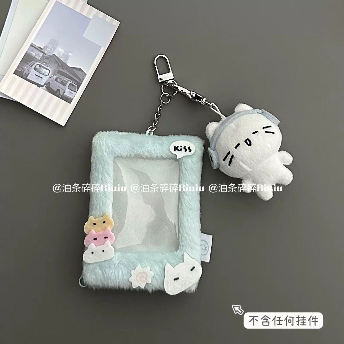 新款海盐可爱猫咪韩系毛绒卡套三寸小卡拍立得照片展示保护套