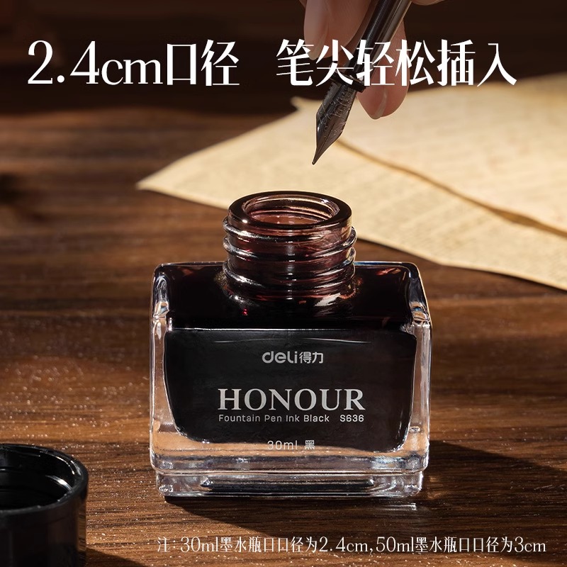 得力钢笔墨水非碳素钢笔用黑色不堵笔墨蓝水通用可擦纯蓝红色教师