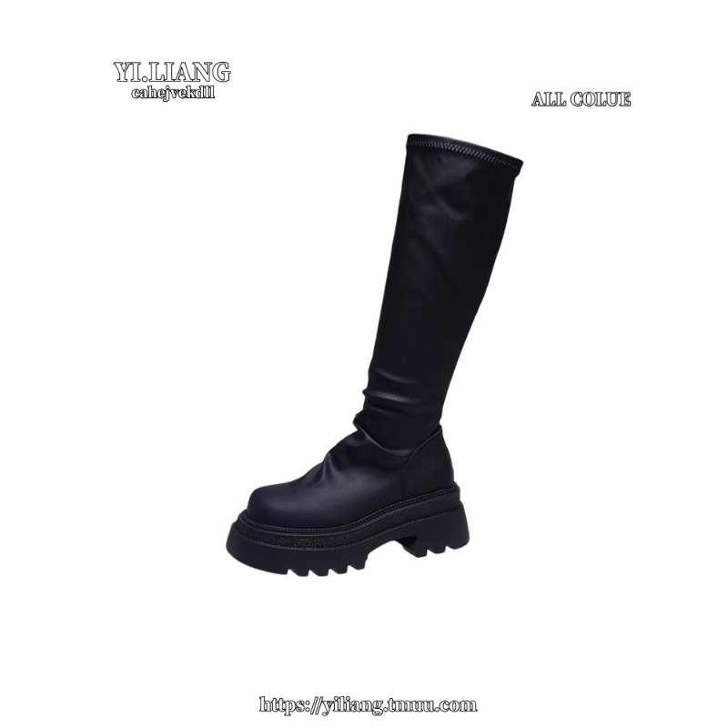 不二鞋坊 长筒靴女增高厚底真皮靴子弹力瘦瘦靴高筒骑士辣妹长靴