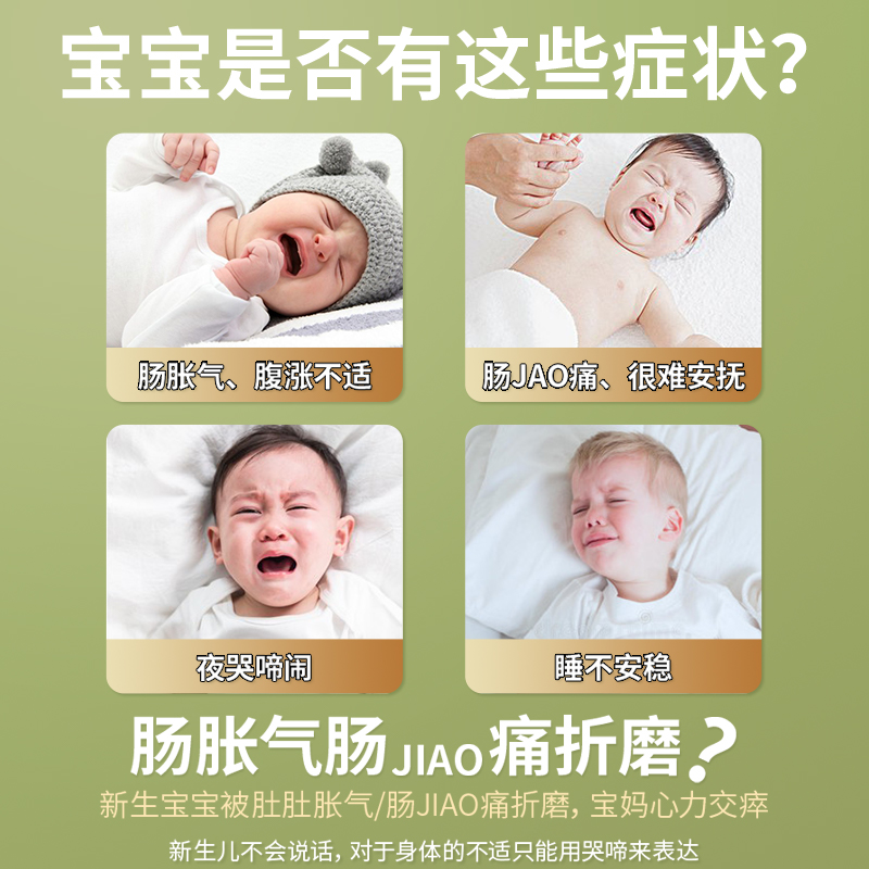 仁和胀气贴新生儿宝宝肚子胀排气参桂二月闹肠胀气婴儿足贴肚脐贴