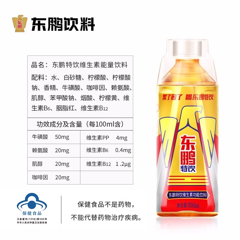 东鹏特饮维生素饮料500m*12瓶整箱加班熬夜提神能量饮料保健食品