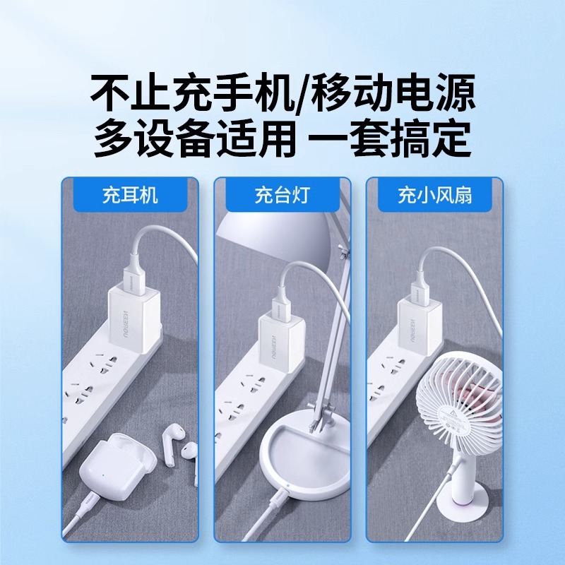绿联5v3a充电器18W快充头USB适用小米红米oppo三星vivo安卓手机耳机数据线typec套装5v1a/5v2a通用9v2a充电头
