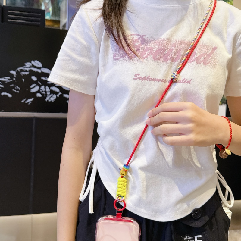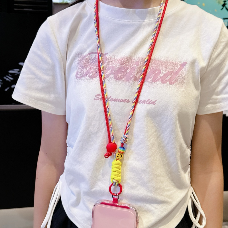 笑脸彩虹手机挂绳斜跨相机可背挂脖可拆卸伸缩高档结实耐用男女户外登山防丢防盗手机壳套长款背带包水杯带子
