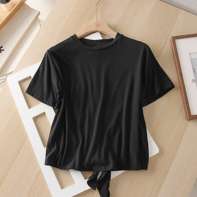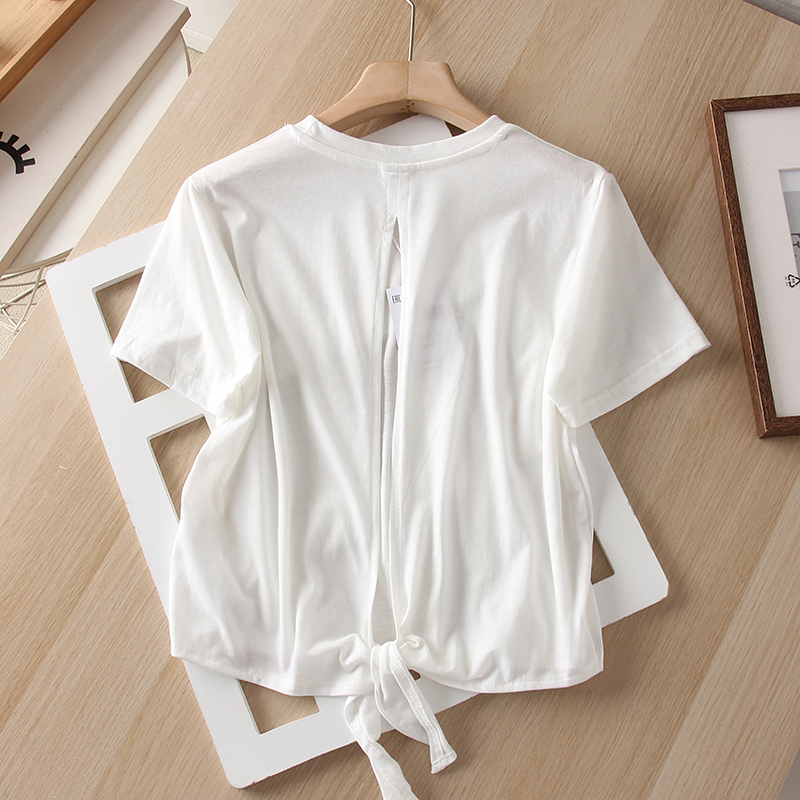 短款白色镂空系带后背露背短袖t恤女夏季2025新款宽松小个子上衣