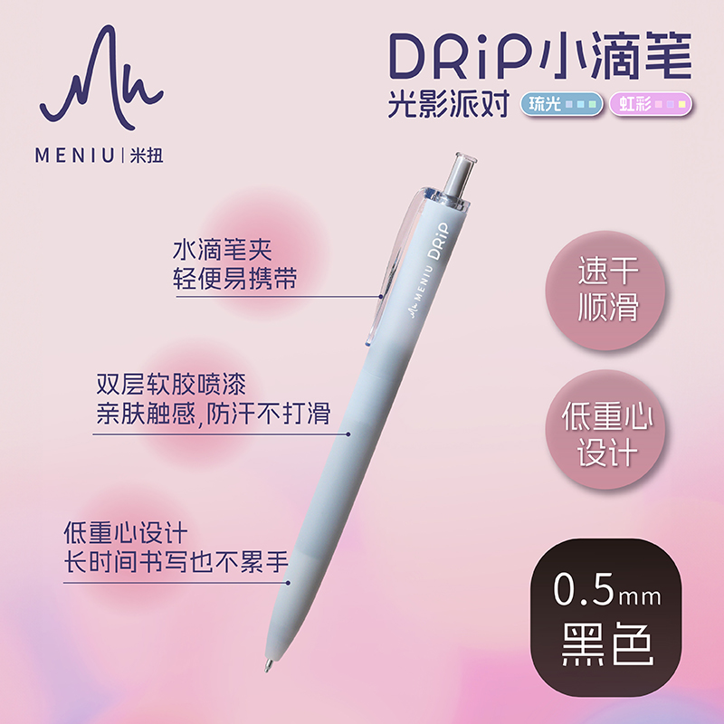 MENIU米扭中性笔光影派对小滴笔高颜值大容量学生专用刷题考试笔