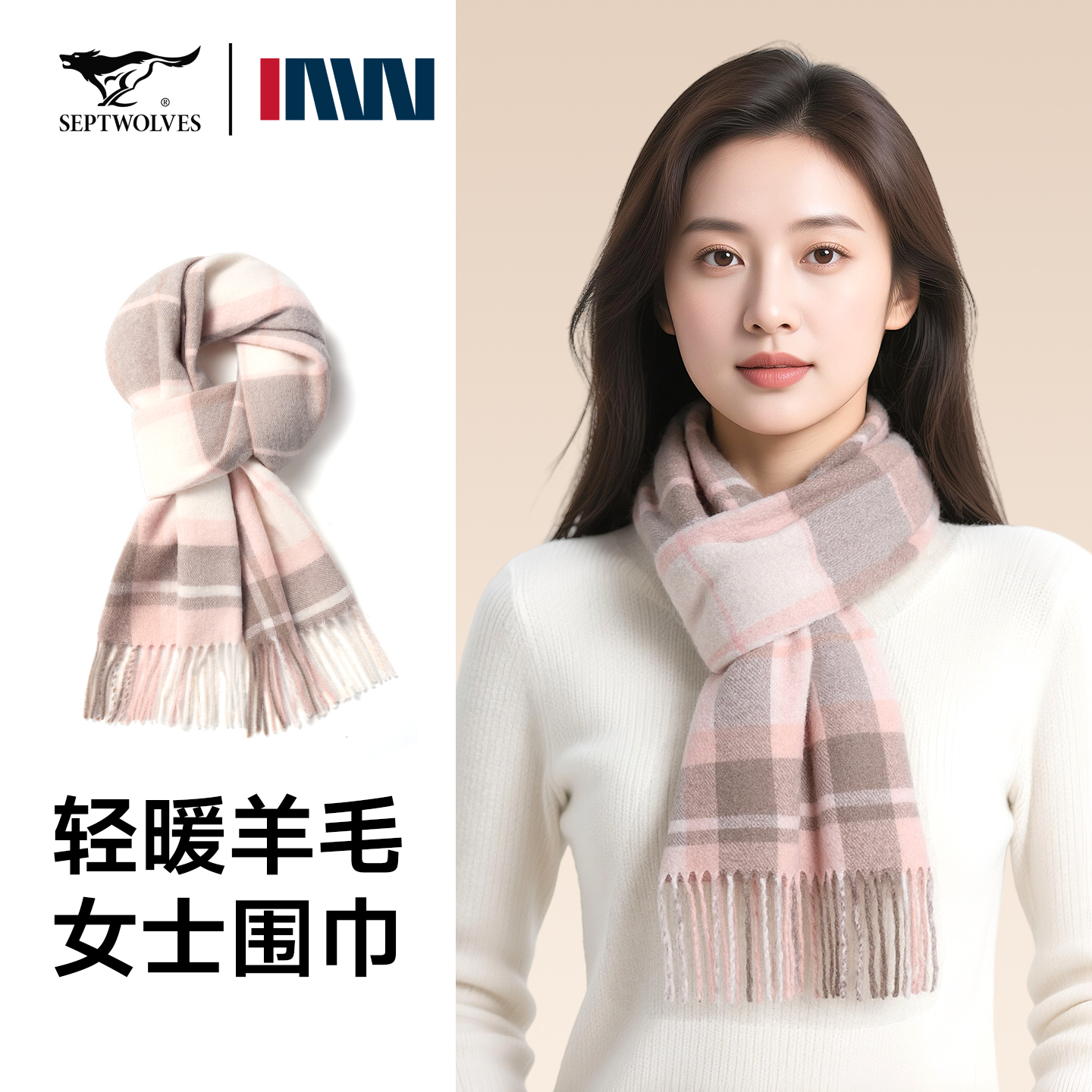 七匹狼围巾女款秋冬季保暖100%羊毛围脖披肩外搭男女情侣款礼物