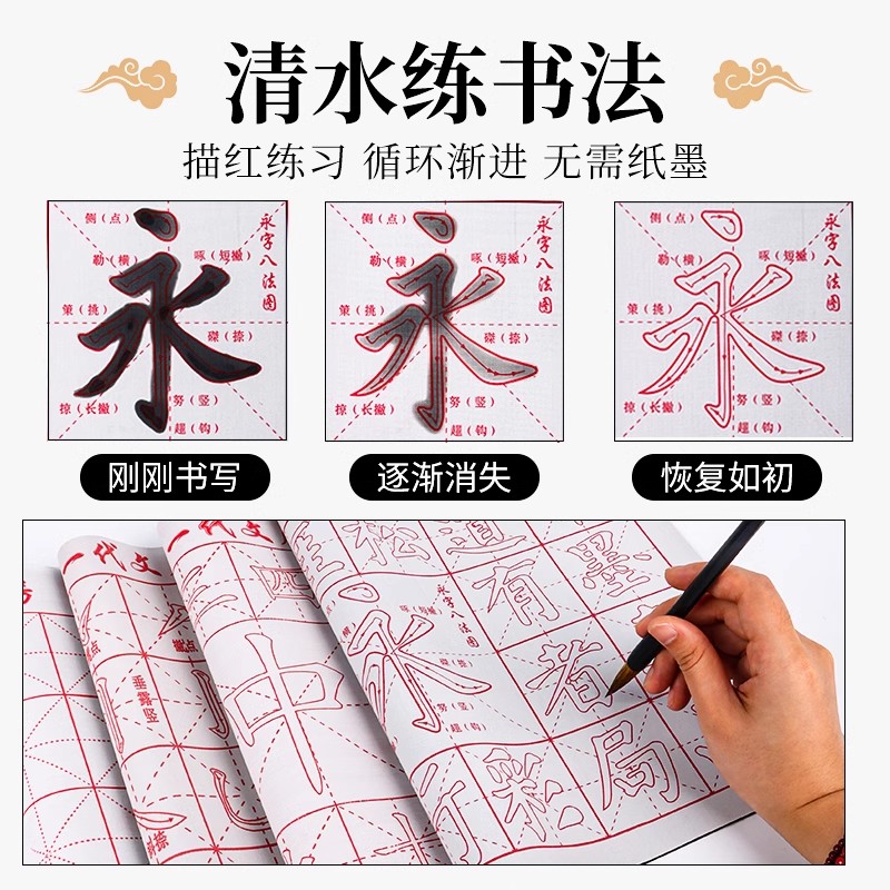 描红加厚无纺布仿宣水写布初学者入门行书楷书套装高级反复水写新型书法爱好者练字专用毛笔临摹字帖