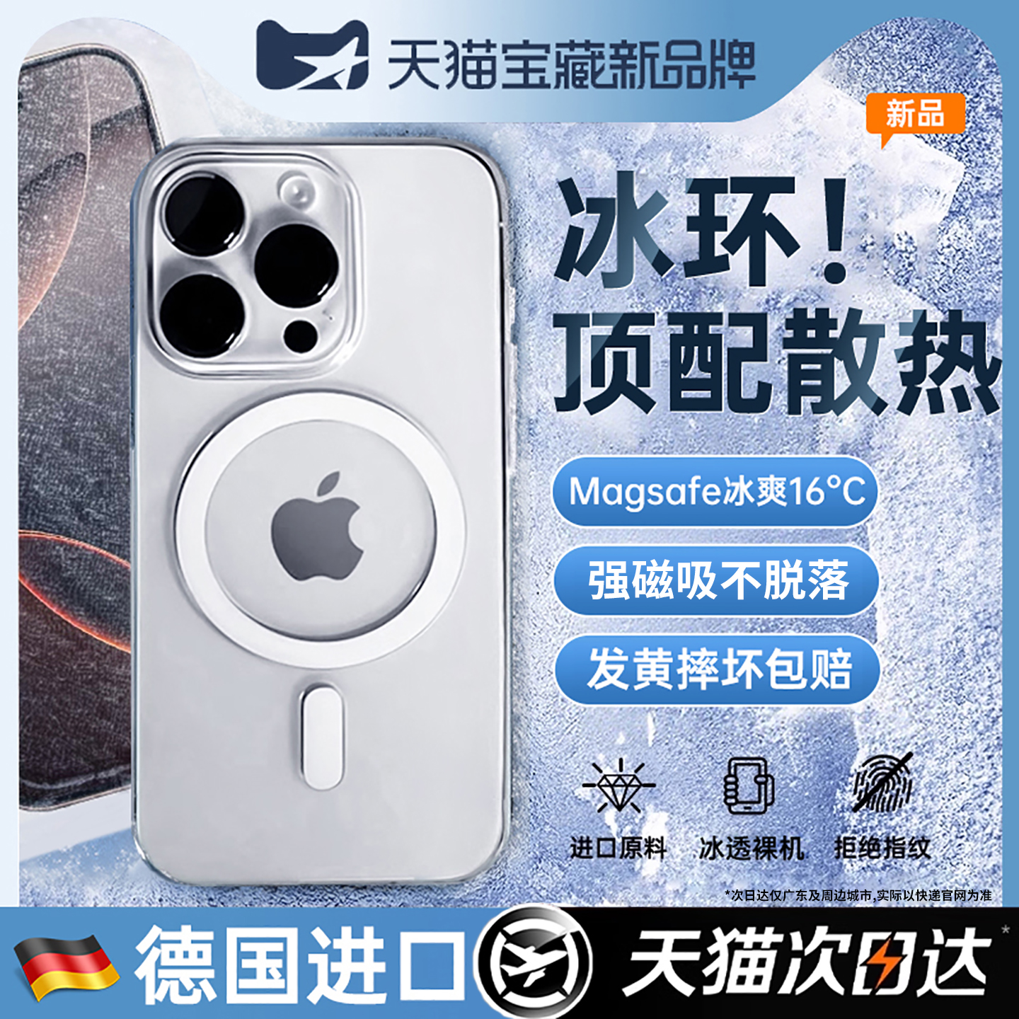 【顶配冰环磁吸散热】欢轴适用苹果17/16ProMax手机壳iPhone15pro保护套13新款14透明防摔12超薄i女高级外air