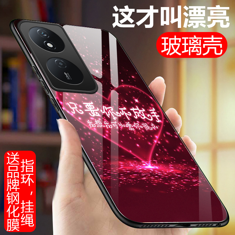 适用荣耀畅玩50Plus手机壳CLK-AN00玻璃硅胶软边硬壳5G防摔保护套男女华为荣誉畅完全包镜头文字时尚创意新潮