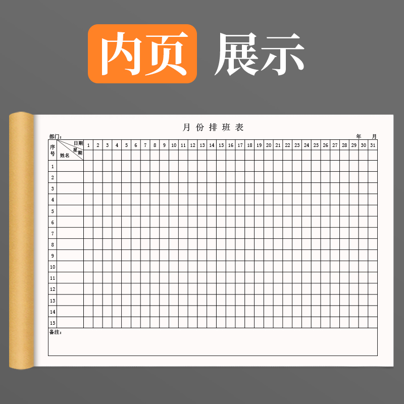 月份排班表易复得纸品A4单位公司工厂休息安排表出勤表每月员工上班考勤出勤签到工资表考勤表薪水发放登记本