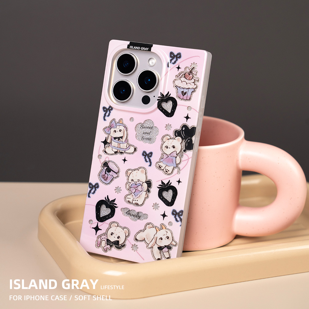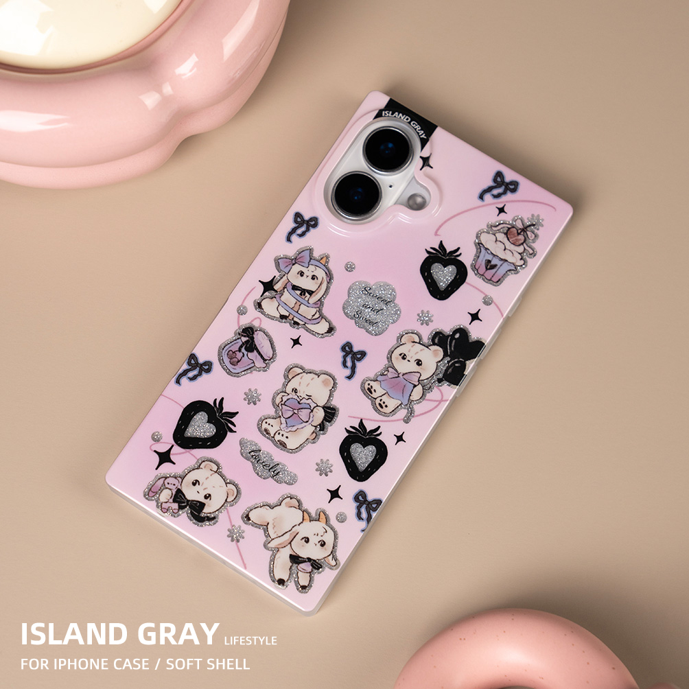 灰岛 粉底羊熊方形手机壳 双层印花 适用于苹果iPhone17 16 15 14 Pro Max 原创设计 可爱涂鸦童趣