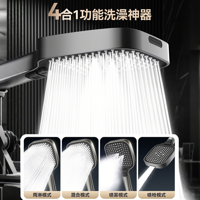 增压淋浴花洒洗澡淋雨喷头加压浴霸水龙头家用浴室套装沐浴热水器