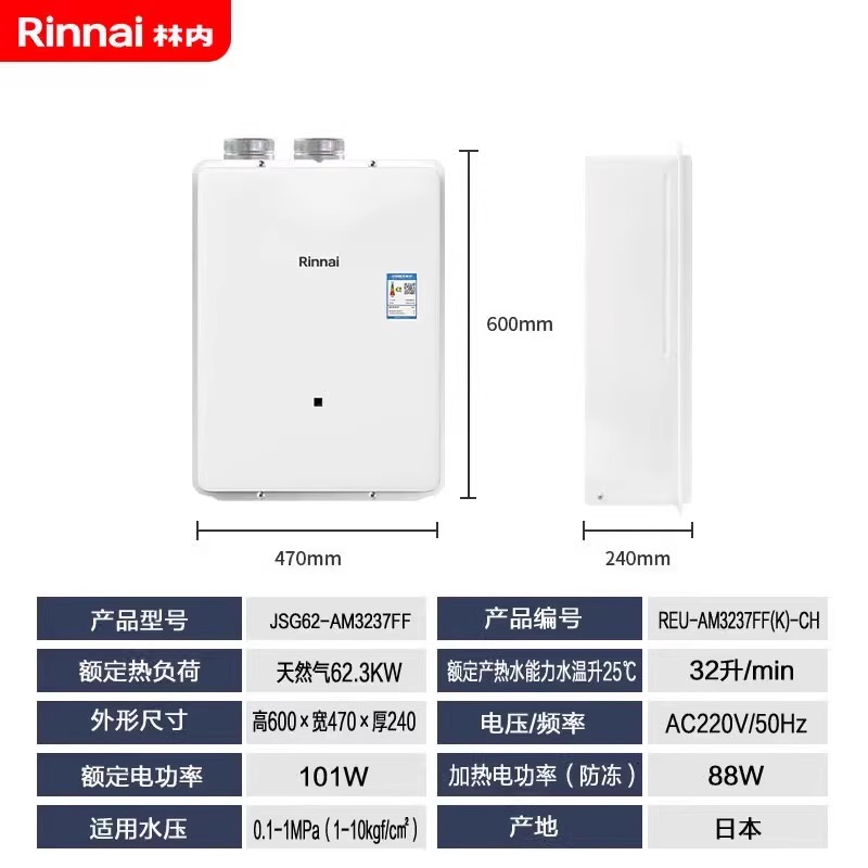 林内平衡式燃气热水器日本原装进口32升别墅级大水量AM3237FF(K)