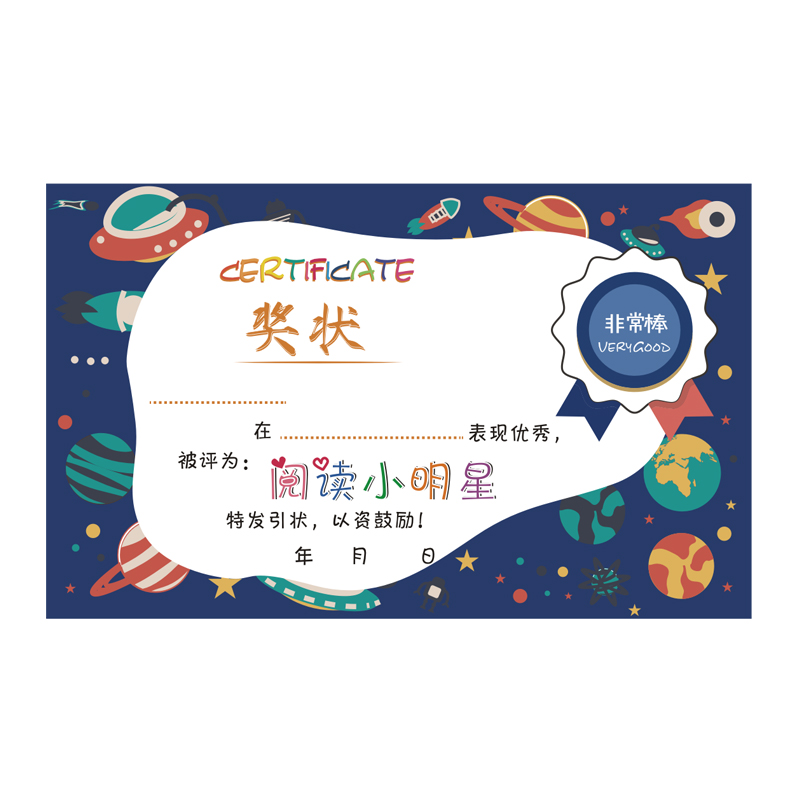小学生奖励迷你小奖状贴纸可粘贴空白定制创意幼儿园儿童每周阅读书写打卡小达人进步之星优秀作业夸夸表扬信