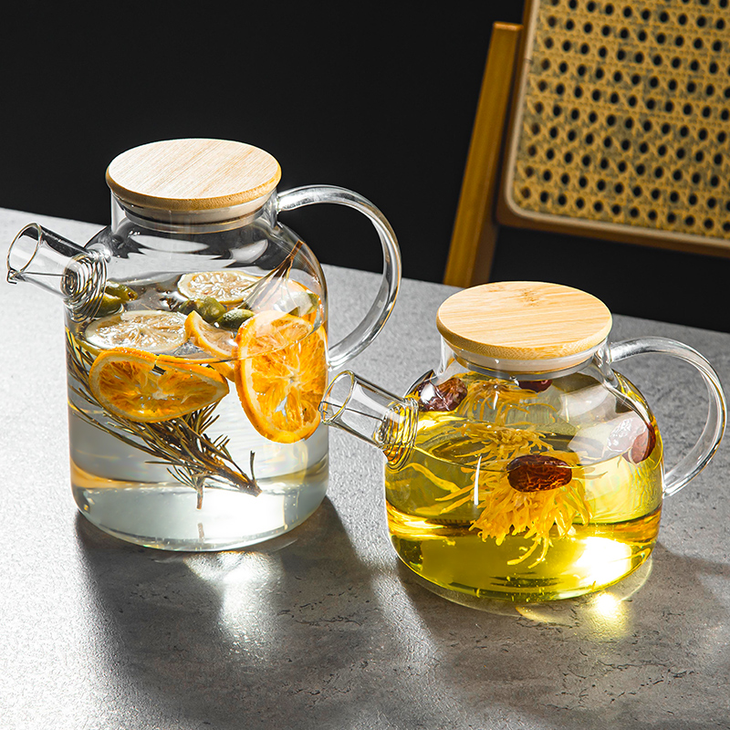 高硼硅耐热玻璃大容量凉水壶竹盖冷水壶家用茶壶果汁杯水杯煮茶壶