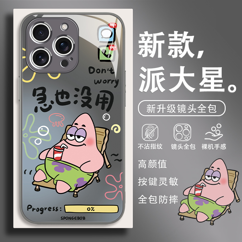 适用苹果16手机壳情侣iPhone15海绵宝宝14promax急也没用13卡通12mini派大星11趣味8plus7套x高级感xr玻璃xs