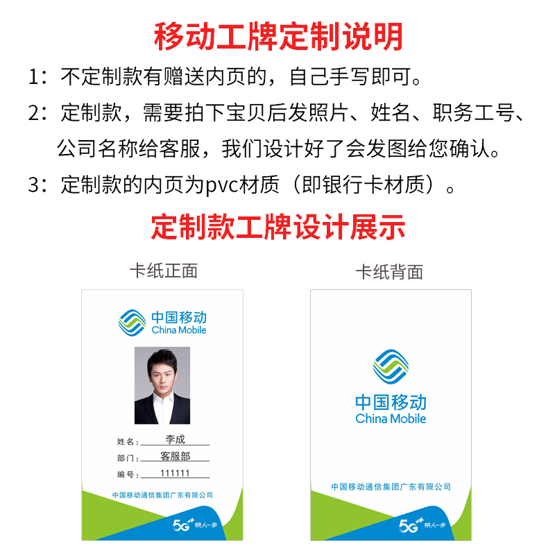 中国移动5G工作证挂绳定制联通电信公司工牌绳胸卡套员工卡人像卡定做工号牌胸牌证件套工作吊牌挂牌壳工作牌