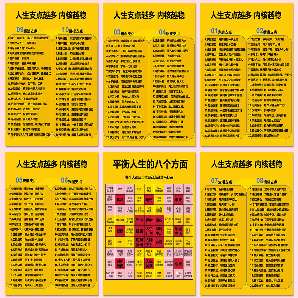 平衡人生的八个方面稳定内核个人成长人生支点提升学习大张贴画