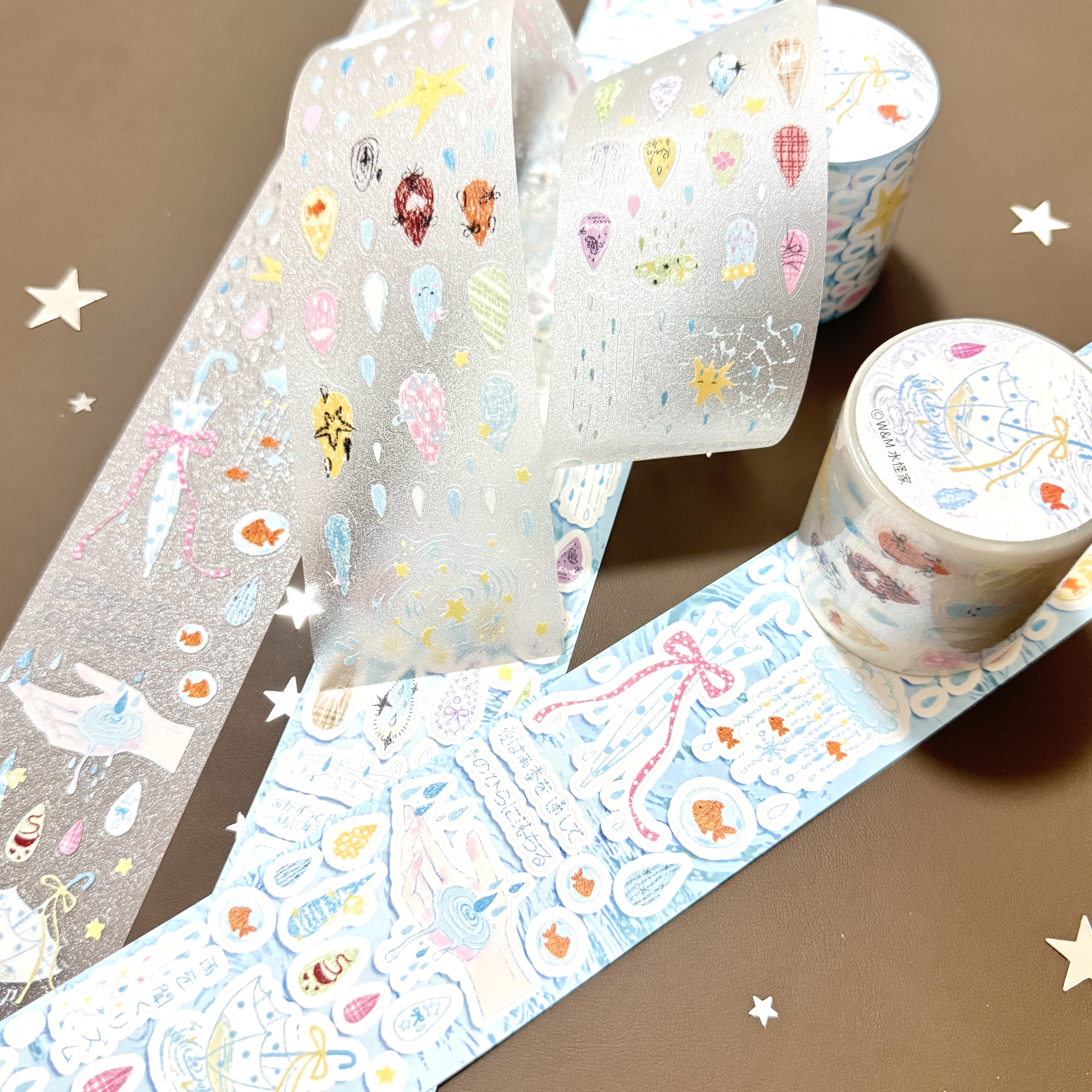 水怪家原创手帐胶带雨伞雨滴手帐胶带雨至临时避雨