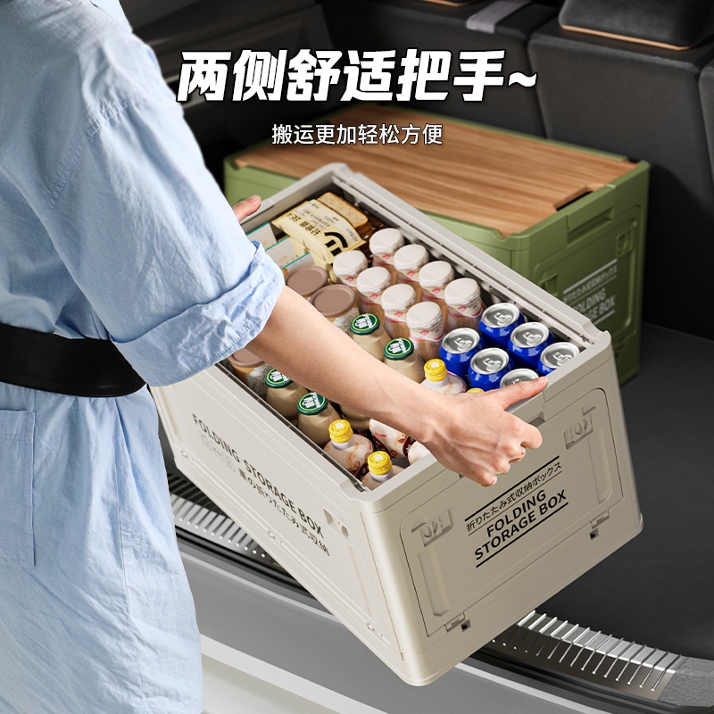 后备箱收纳箱车载汽车整理箱车用户外露营箱可折叠木盖置物储物箱