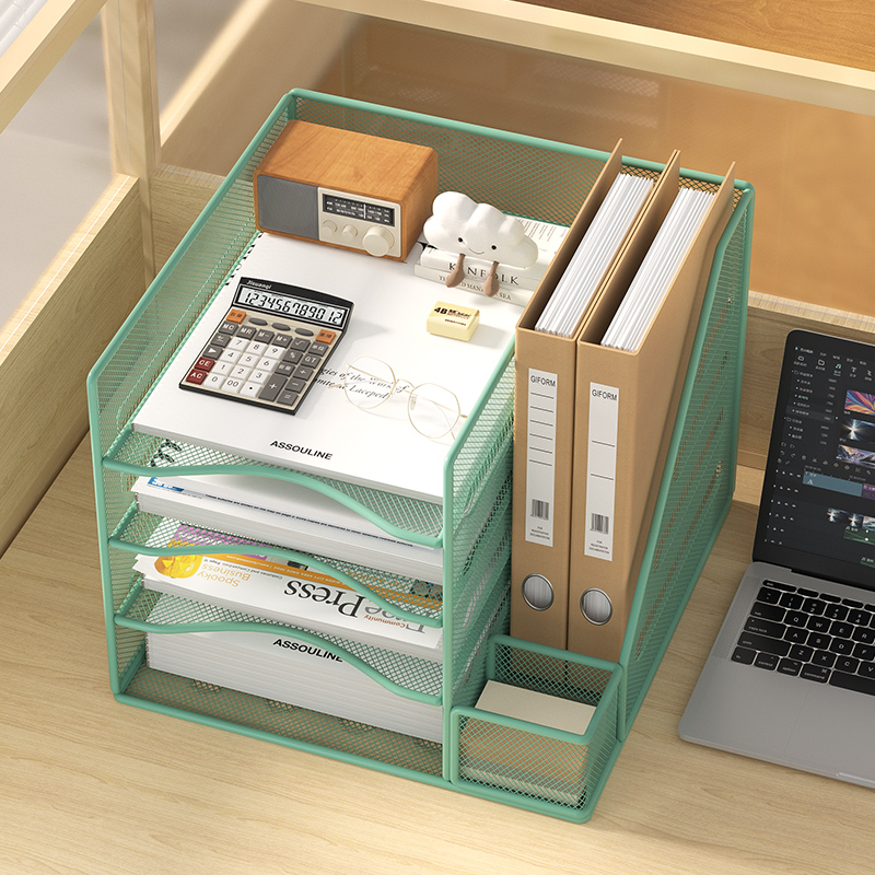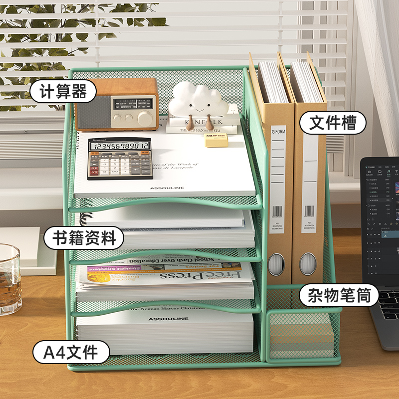 办公桌收纳置物架文件收纳盒办公用品文件架桌面书架多层大容量文件框文件夹A4纸资料档案整理架金属书立架