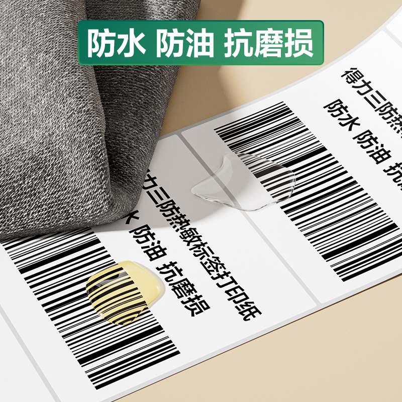 得力120系列三防热敏标签纸打印纸不干胶标签贴纸标签打印机纸防水防油纸条码纸菜鸟驿站快递单超市价格贴纸