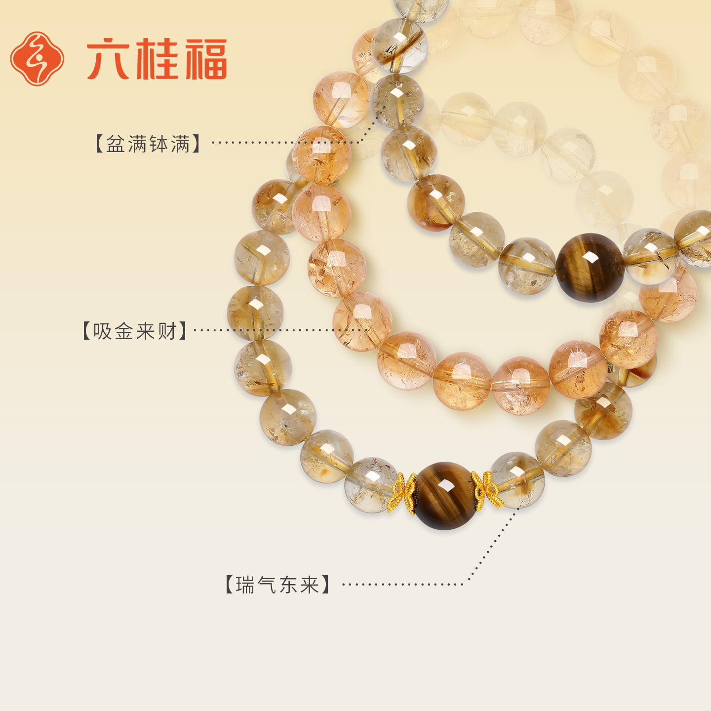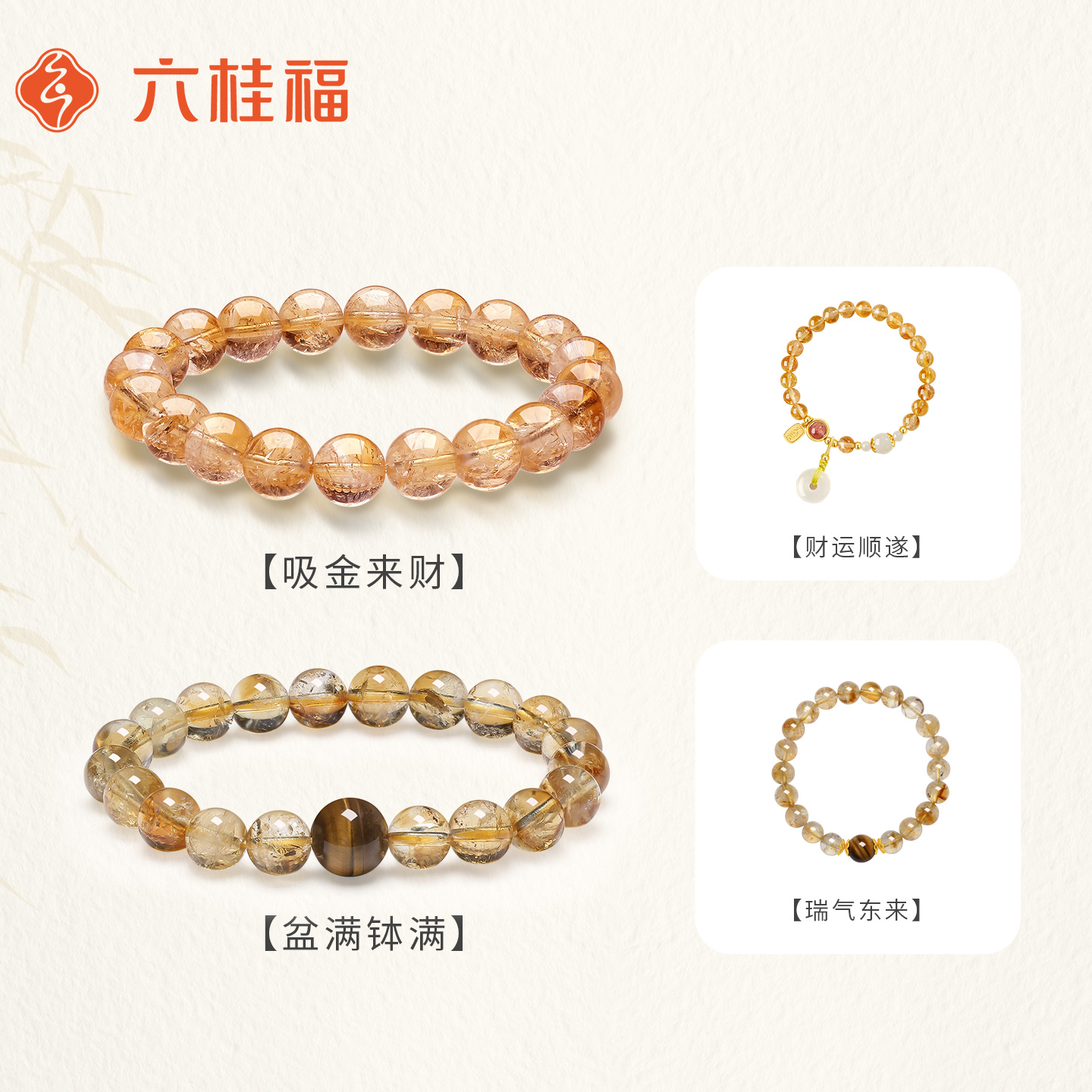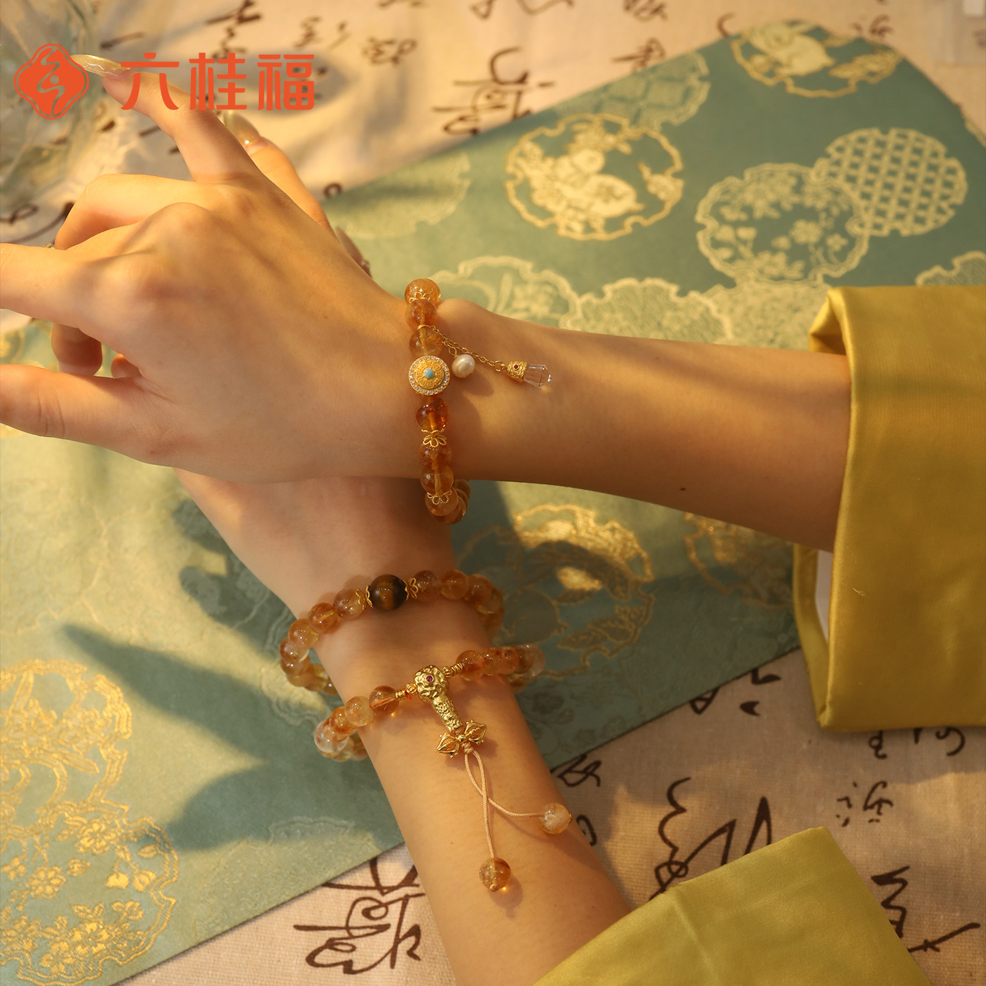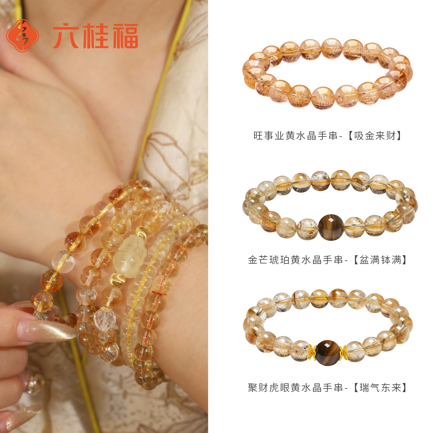 六桂福珠宝黄水晶手链女男天然水晶手串情侣饰品招财貔貅玉髓罗盘