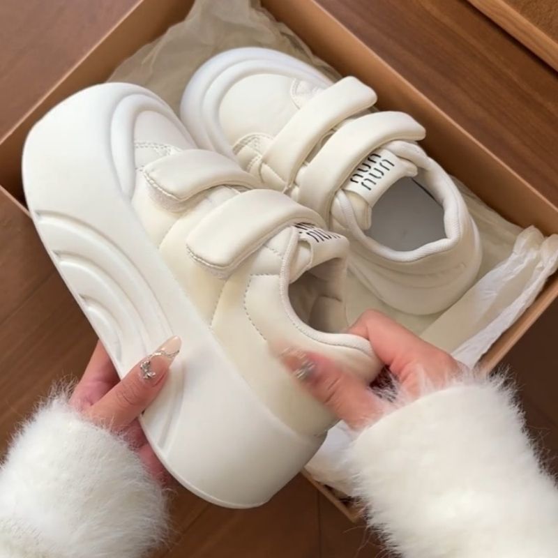 2025秋季魔术贴小白板鞋女丑萌小众学生休闲单鞋厚底增高潮鞋圆头
