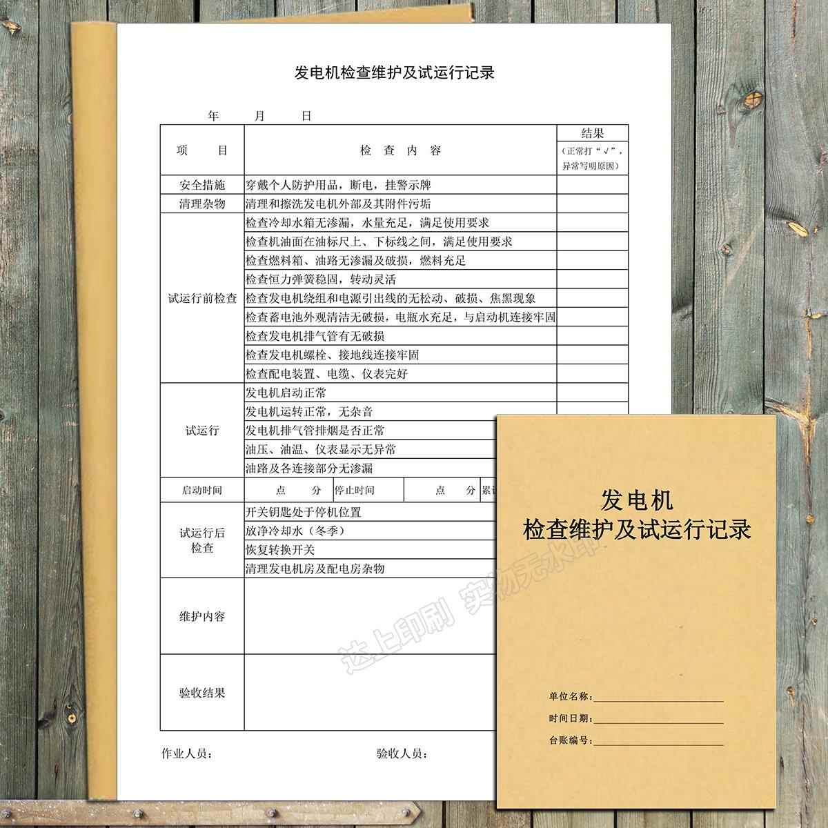 发电机检查维护及试运行记录本加油安全生产检查台账日巡查登记表