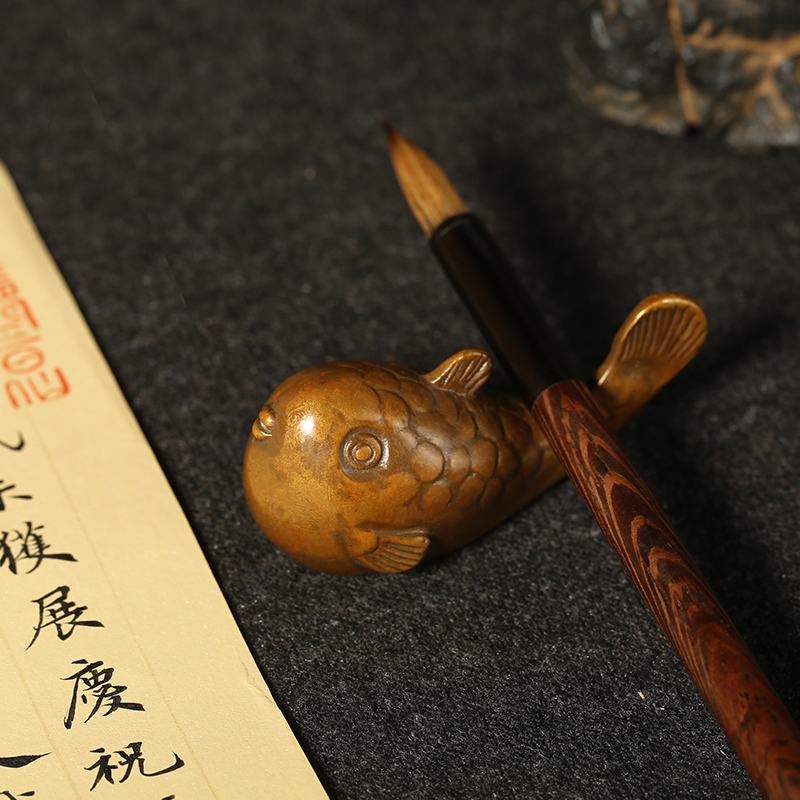 青铜小海豚小河豚镇纸镇尺书法金属实心创意仿古小巧 压宣纸压纸可爱小摆件学生 笔置笔搁简约文房四宝