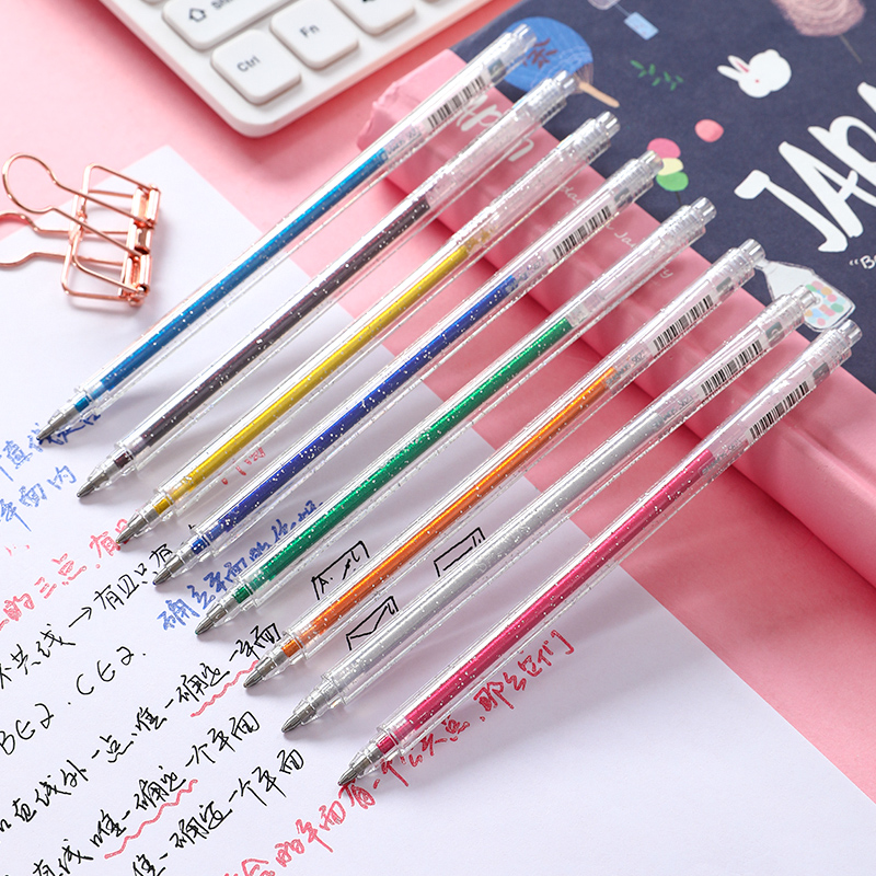彩色闪光笔啫喱发光亮晶晶流沙银光变色做手账的手帐专用儿童莹光做笔记珠光标记闪亮金属轮廓闪粉水彩笔荧光
