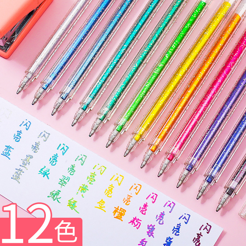 彩色闪光笔啫喱发光亮晶晶流沙银光变色做手账的手帐专用珠光标记儿童莹光做笔记闪亮金属轮廓闪粉水彩笔荧光